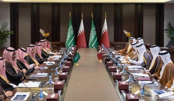Saudi and Qatari foreign ministers co-chair joint coordination council meeting.